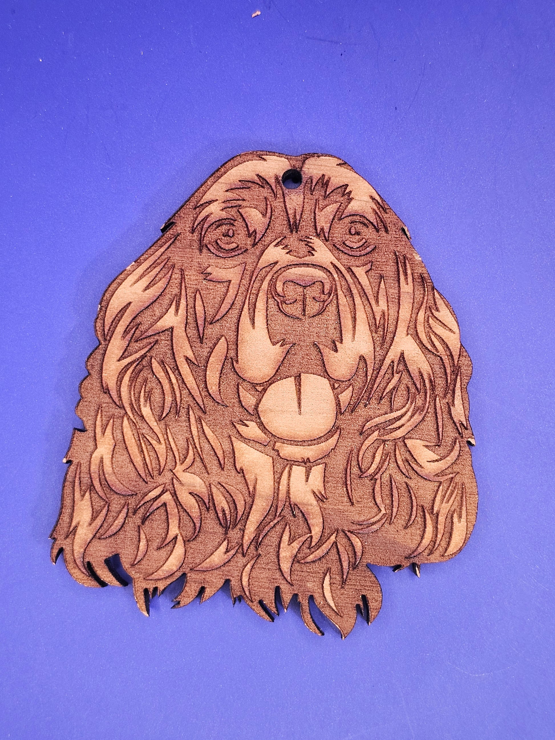 Handcrafted from aromatic red cedar, this Cocker Spaniel ornament showcases meticulous detail achieved through precision laser engraving. Each line and feature is rendered with technical accuracy, capturing the breed's characteristic expression and coat texture. The natural cedar wood offers a beautiful aroma, while the engraved details remain crisp and defined. The perfect gift to share with a friend.