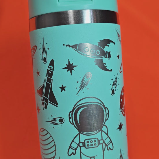 Blast off into hydration with this stellar 12oz laser-engraved space-themed cup. Featuring cosmic astronauts, planets, and stars, this durable cup brings adventure to every sip. Built tough for active kids, it resists chips and fading through dishwasher cycles and daily exploration. Perfect for school lunches, space camp, or imaginative play, this cup lets young astronauts express their love of the cosmos. An ideal gift for kids who dream of the stars.