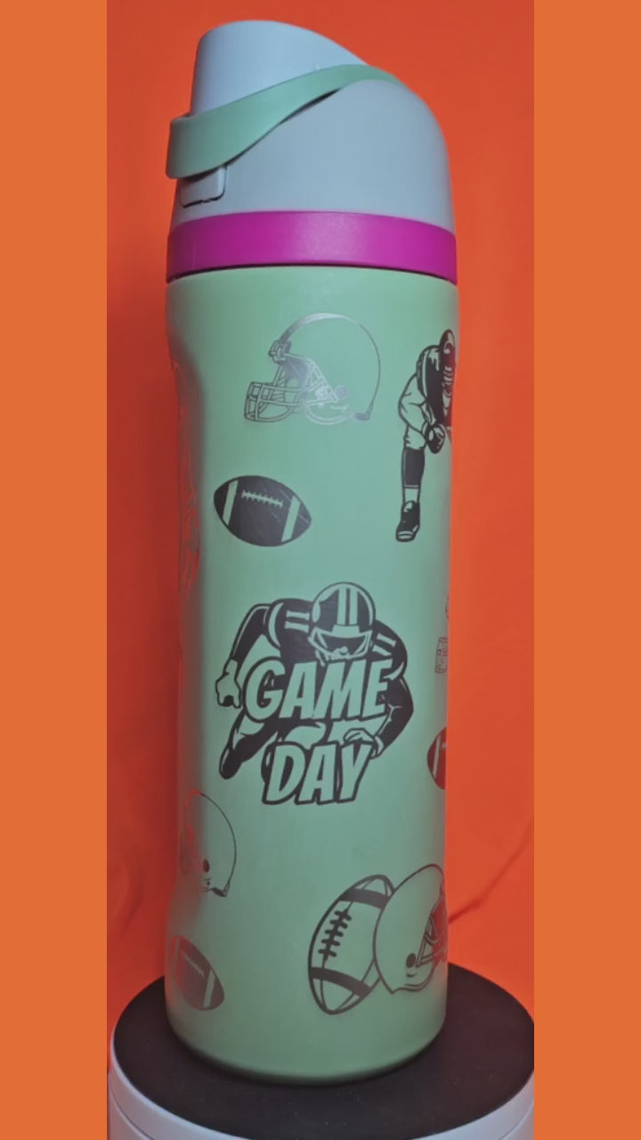 Celebrate your love of the game with our Football Star Sip and Pour 24oz Cups. Featuring dynamic football player-themed designs applied through full-wrap laser engraving, these cups showcase crisp, durable artwork that withstands daily use. Perfect for game day gatherings, team celebrations, or as a gift for any football enthusiast, each cup combines premium durability with bold visual appeal. The personalized engraving ensures your design stays vibrant through countless refills, making these cups both functional and memorable.